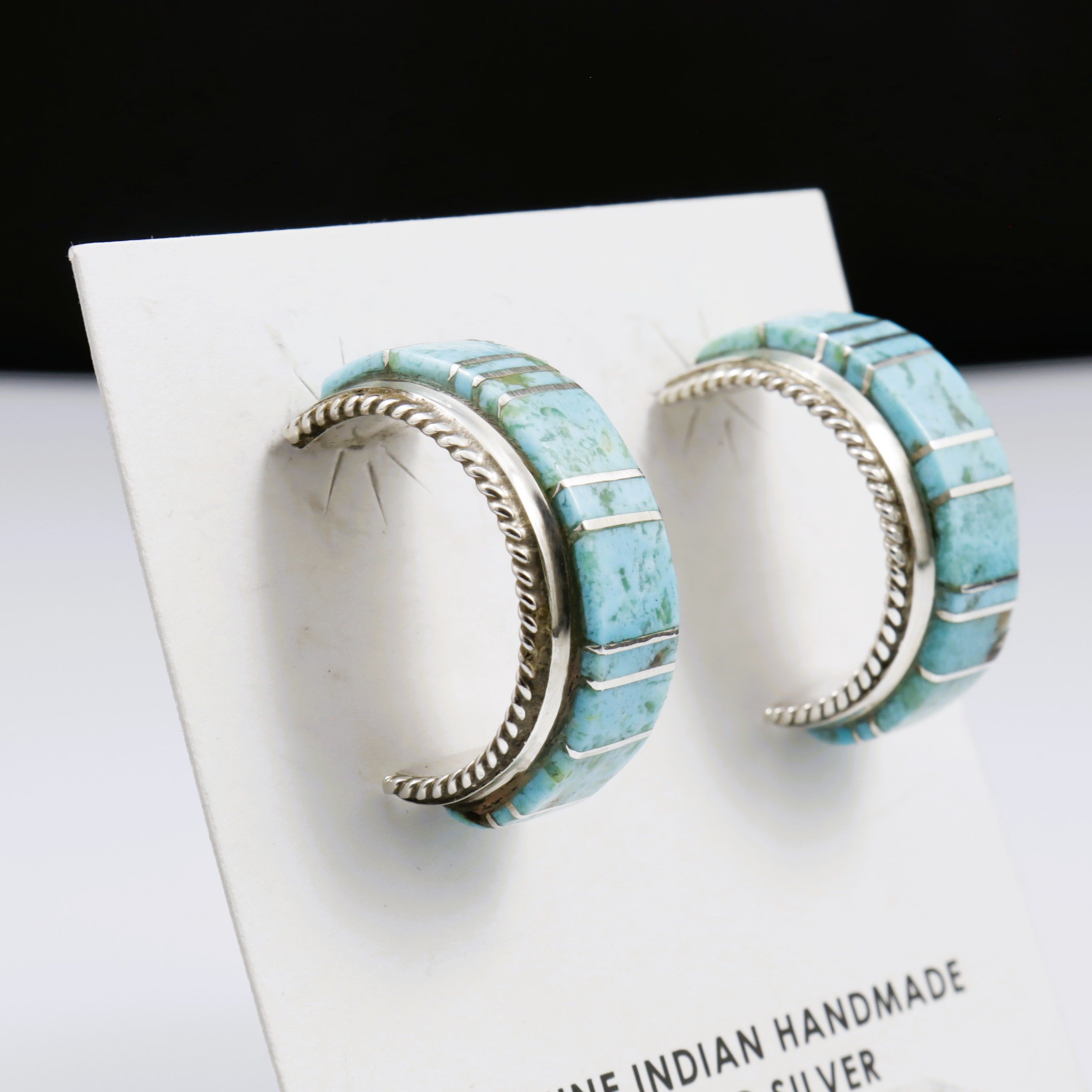 Blue Turquoise Inlay Half Hoop Studs