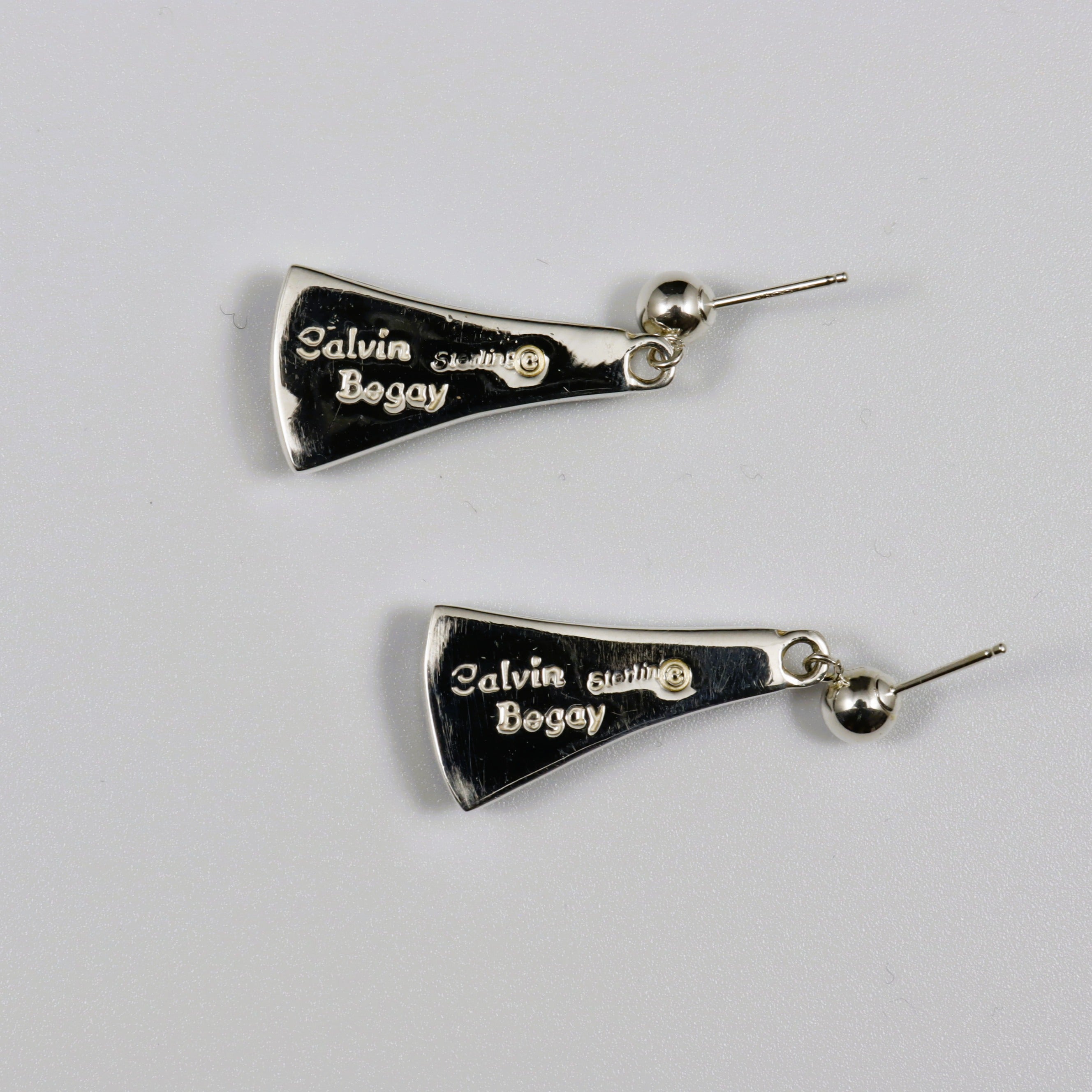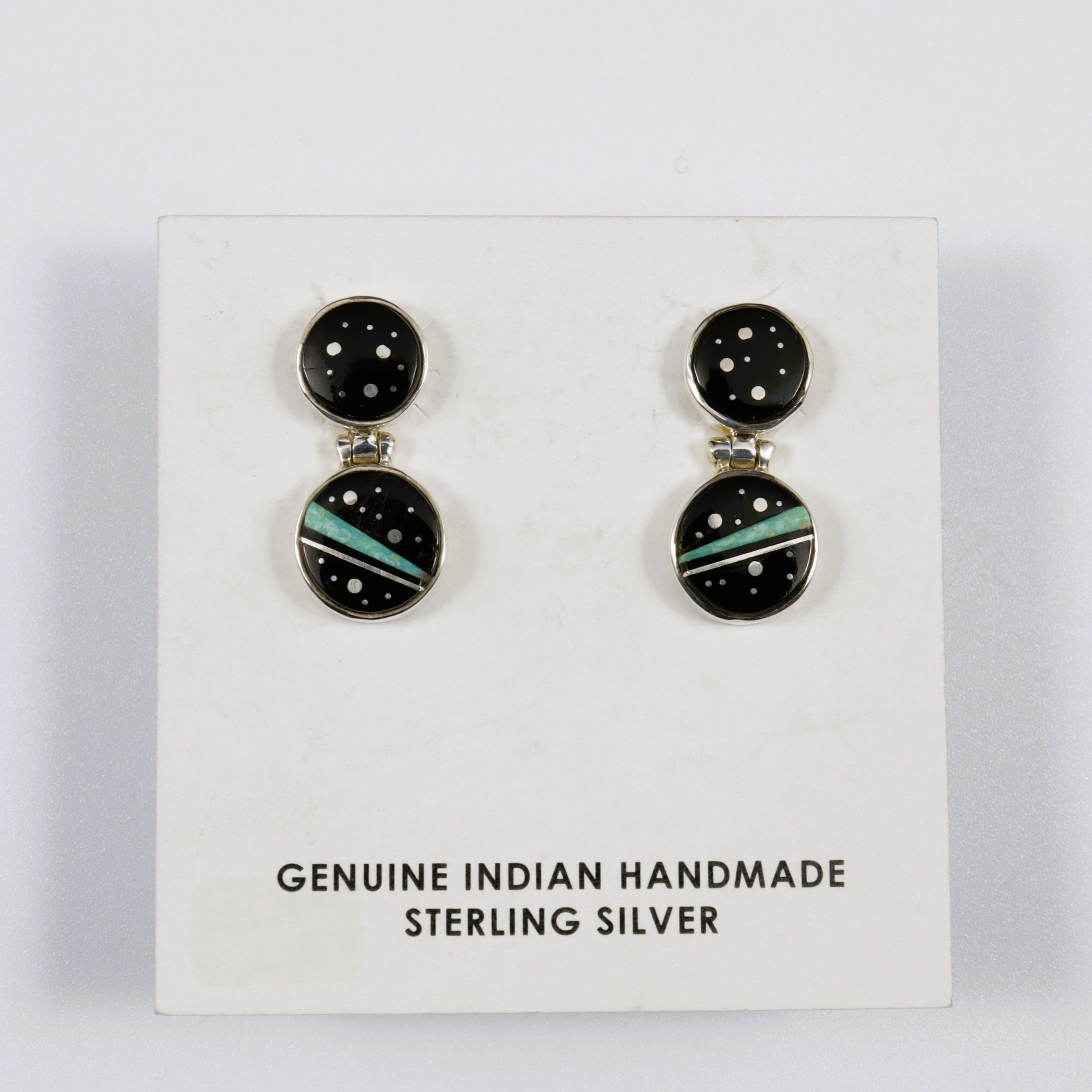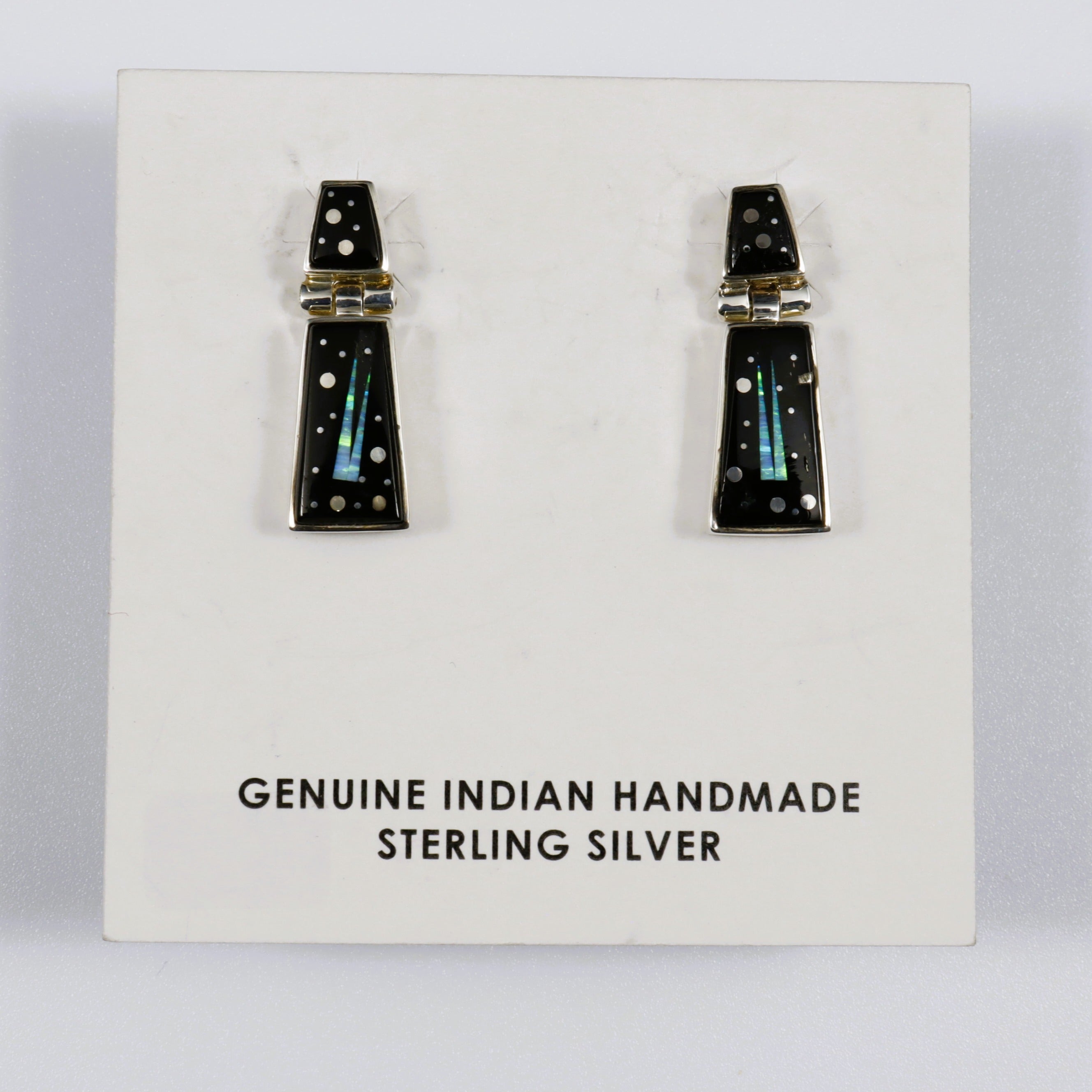 Calvin Begay Acoma Jet and Mother of Pearl Inlay Dangle on Posts