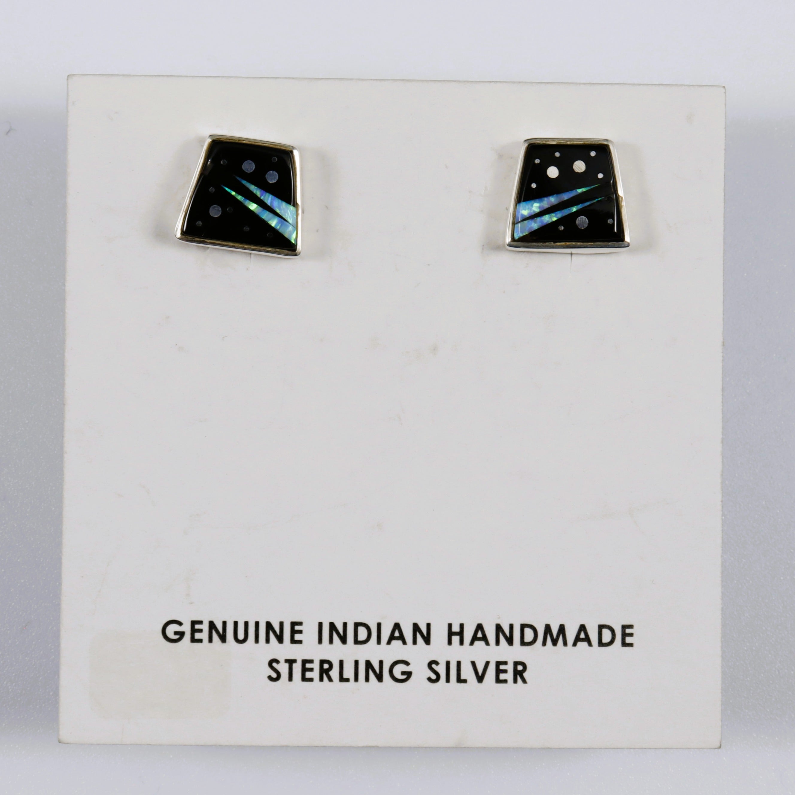 Calvin Begay Night Sky Acoma Jet and Opal Inlay Trapezoid Studs