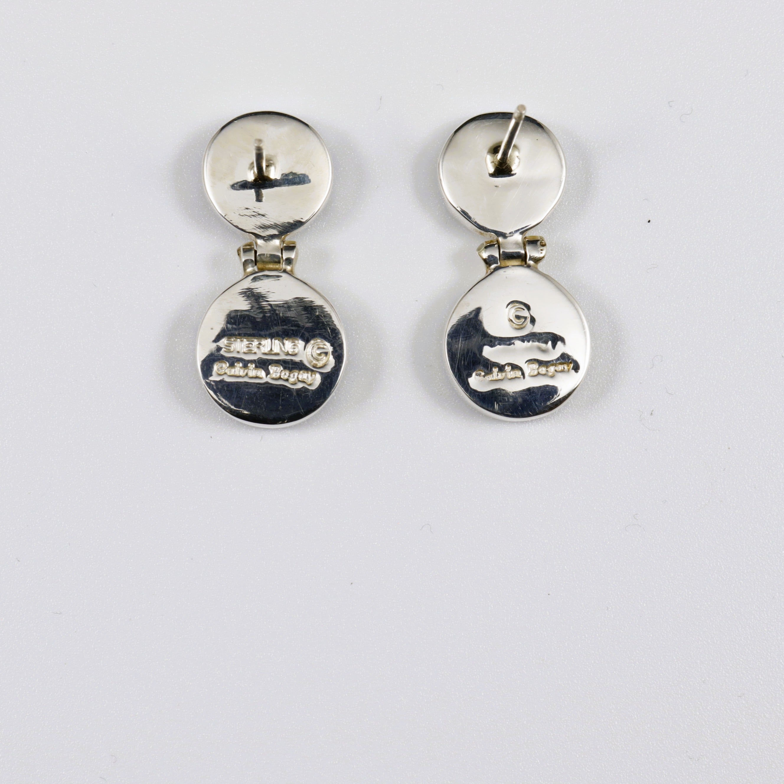 Calvin Begay Night Sky Acoma Jet and Opal Inlay Hinged Posts