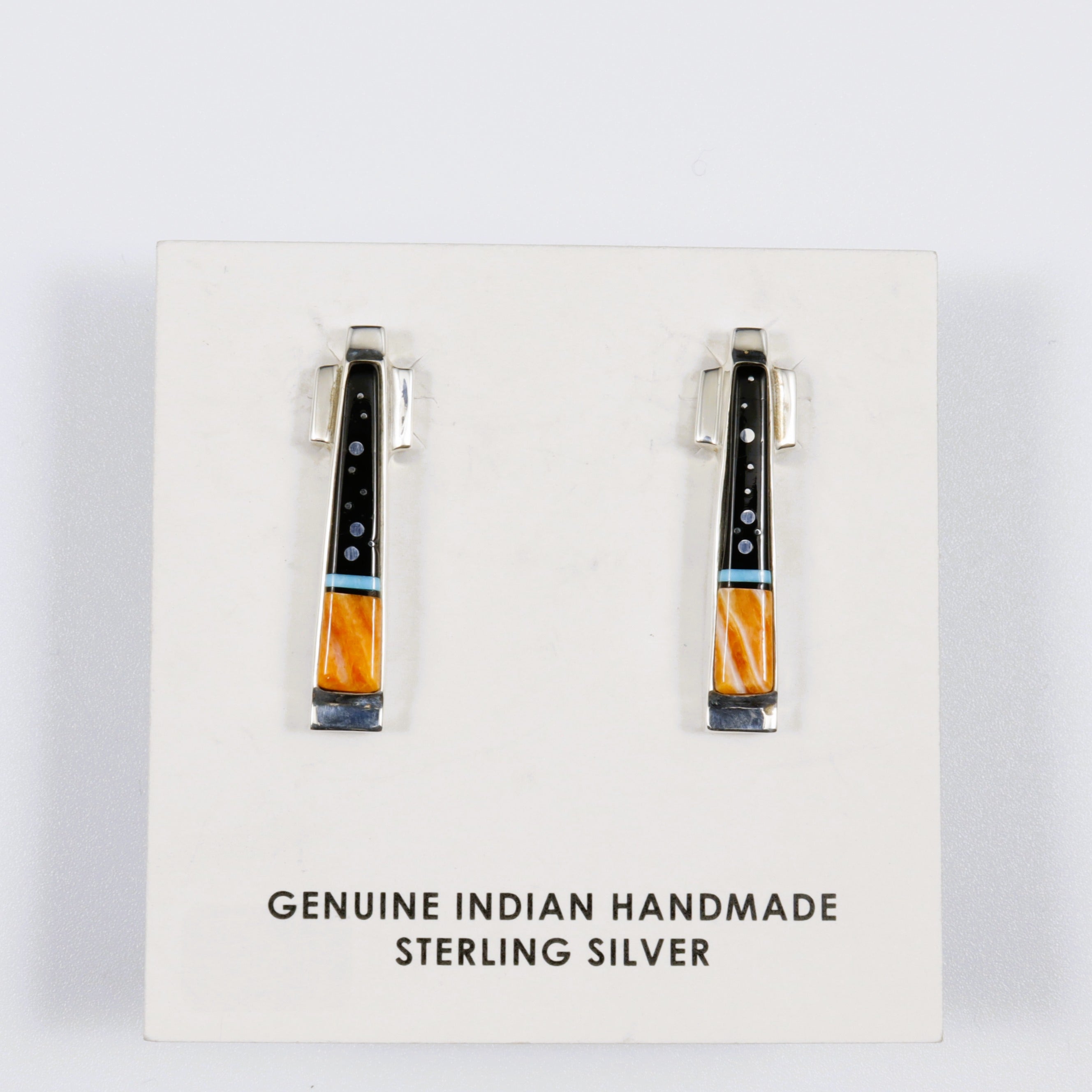 Calvin Begay Night Sky Acoma Jet and Oyster Shell Inlay Long Fixed Posts