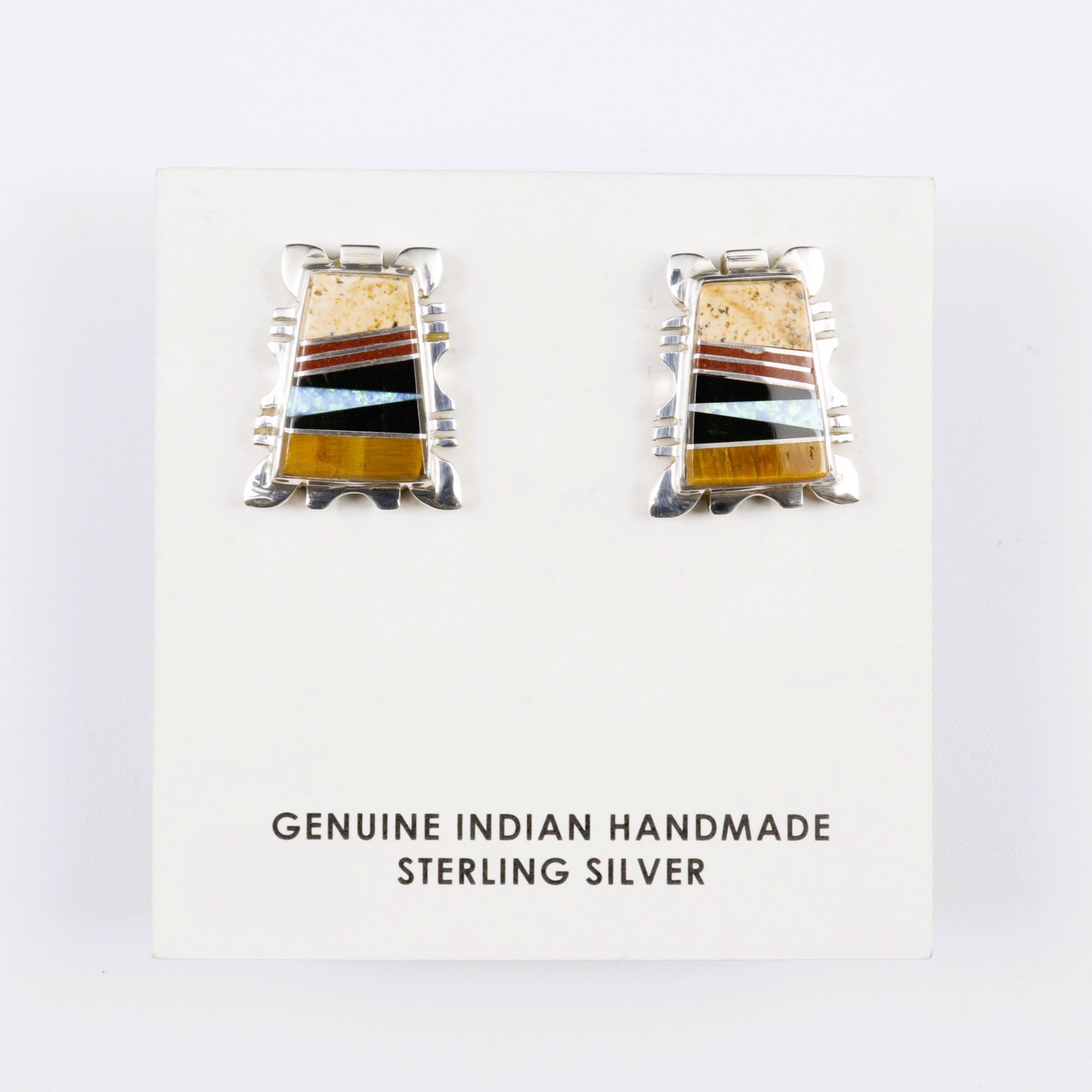 Calvin Begay Picture Jasper and Tiger’s Eye Inlay Trapezoid Posts