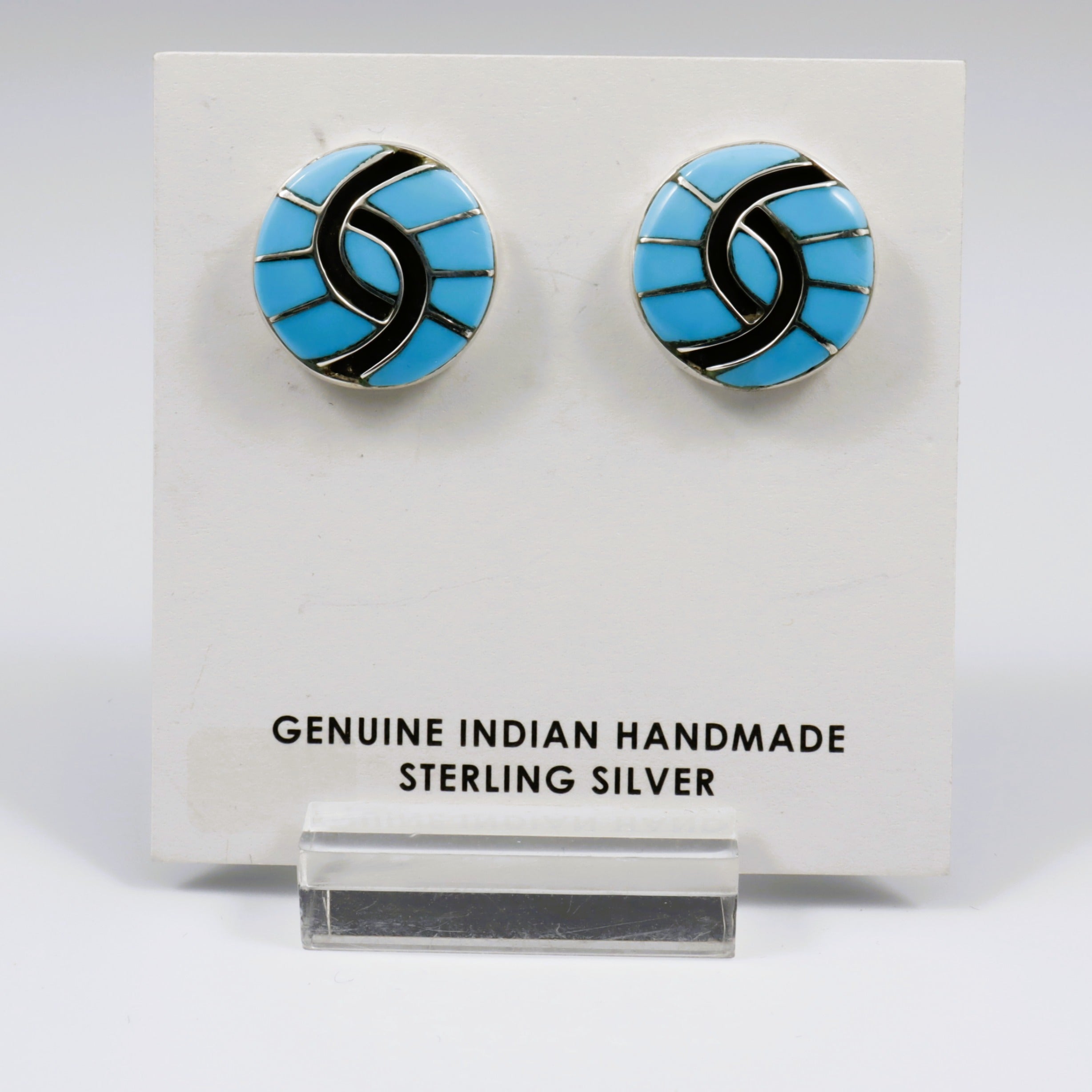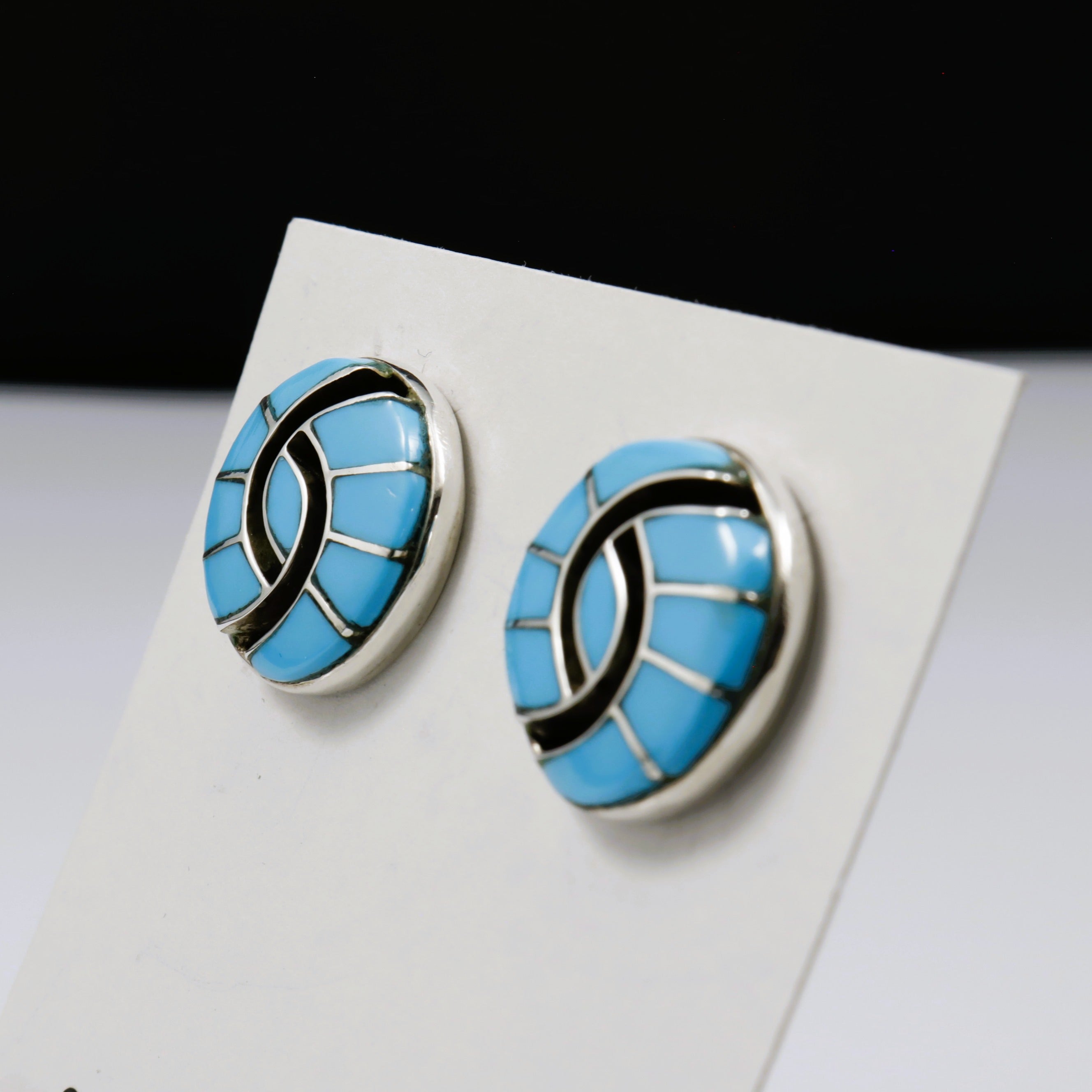 Zuni Blue Turquoise Hummingbird Circle Studs